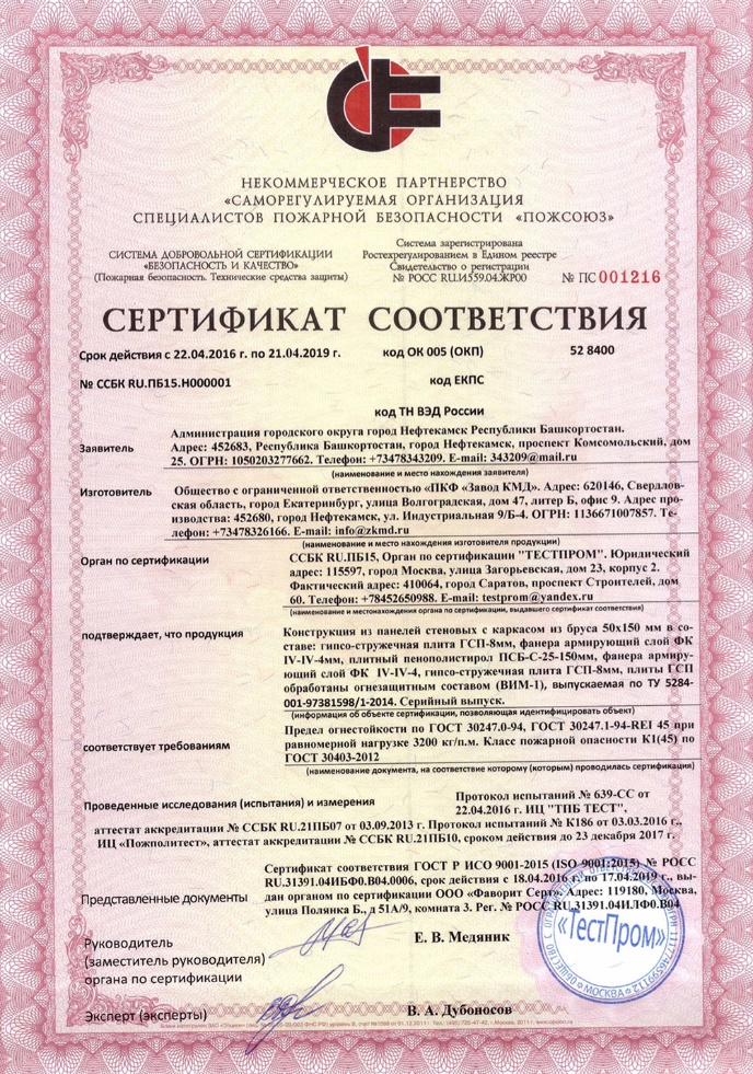 A fire safety certificate confirms the safety of a product that has passed fire safety tests and complies with the technical regulations governing fire safety in Russia. This document is currently the most important, as without it, you will not be able to sell products subject to fire safety requirements, nor will you be able to begin construction, as virtually any construction project uses materials that require this permit.