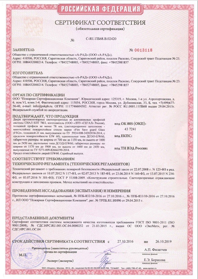 If, after the required tests, your products are found to have acceptable fire resistance, you can obtain this certificate. Anyone planning to do business in Russia is absolutely required to obtain the Russian Fire Certificate.